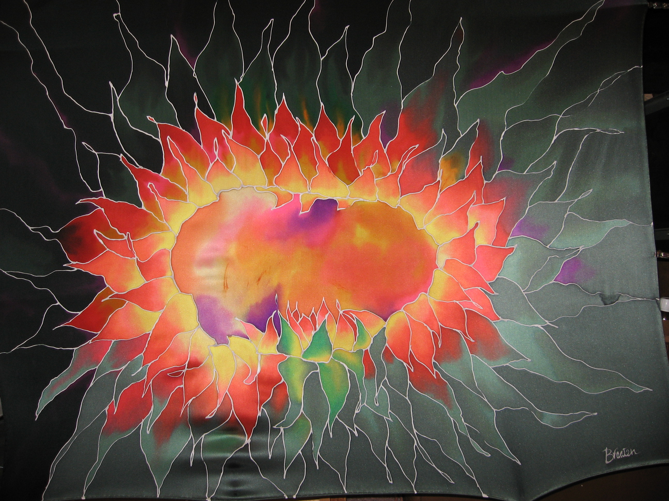 Brilliant Lotus – this scarf is on charmeuse silk, a very luxurious texture. It is 14″x72″ and feels amazing on the skin. Of course, this design can be ordered in a variety of sizes, colors, and textures – all silk.